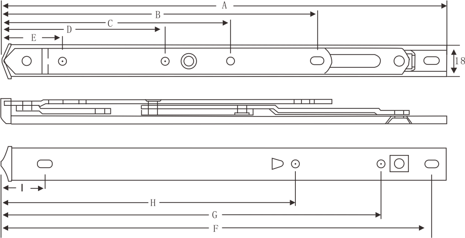 連桿數量 | 折片厚度(mm) | 規格\值 | A | B | C | D | E | F | G | H | I | 窗最高(mm) | 窗最寬(mm) | 窗最重(kg) | 開啟角度(±2°) |