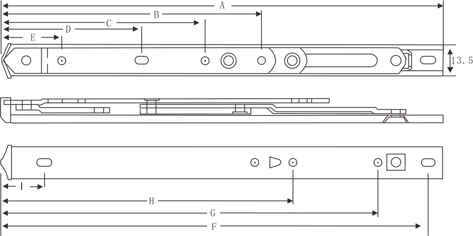 連桿數(shù)量 | 折片厚度(mm) | 規(guī)格\值 | A | B | C | D | E | F | G | I | 窗最高(mm) | 窗最寬(mm) | 窗最重(kg) | 開啟角度(±2°) |