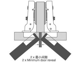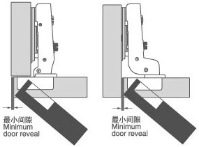 最小間隙指側面應該預留的空間,以確保門的正常開啟。它取決于杯座距離K,門的厚度和所選擇的鉸鏈類型。門上的圓角,可以減小最小間隙。每種較鏈的最小間隙,詳見表格。