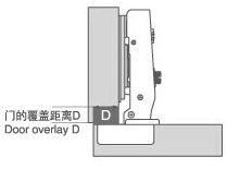 門的覆蓋距離(D)是指門覆蓋柜體側板的距離。