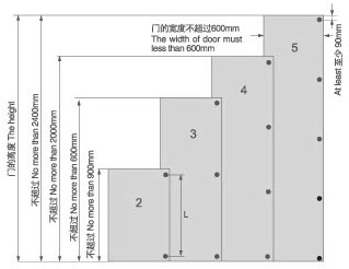 門的寬度,高度,重置以及材料特性是確定較鏈數置的因索。從實際角度講,這些因索的是相互制約 的,因此圖中的數據只能用做參考。為了保險起見,建議通過試安裝或增加鉸鏈數量以得出結論。從 穩定性角度考慮,L的數值應該盡可能大一些。